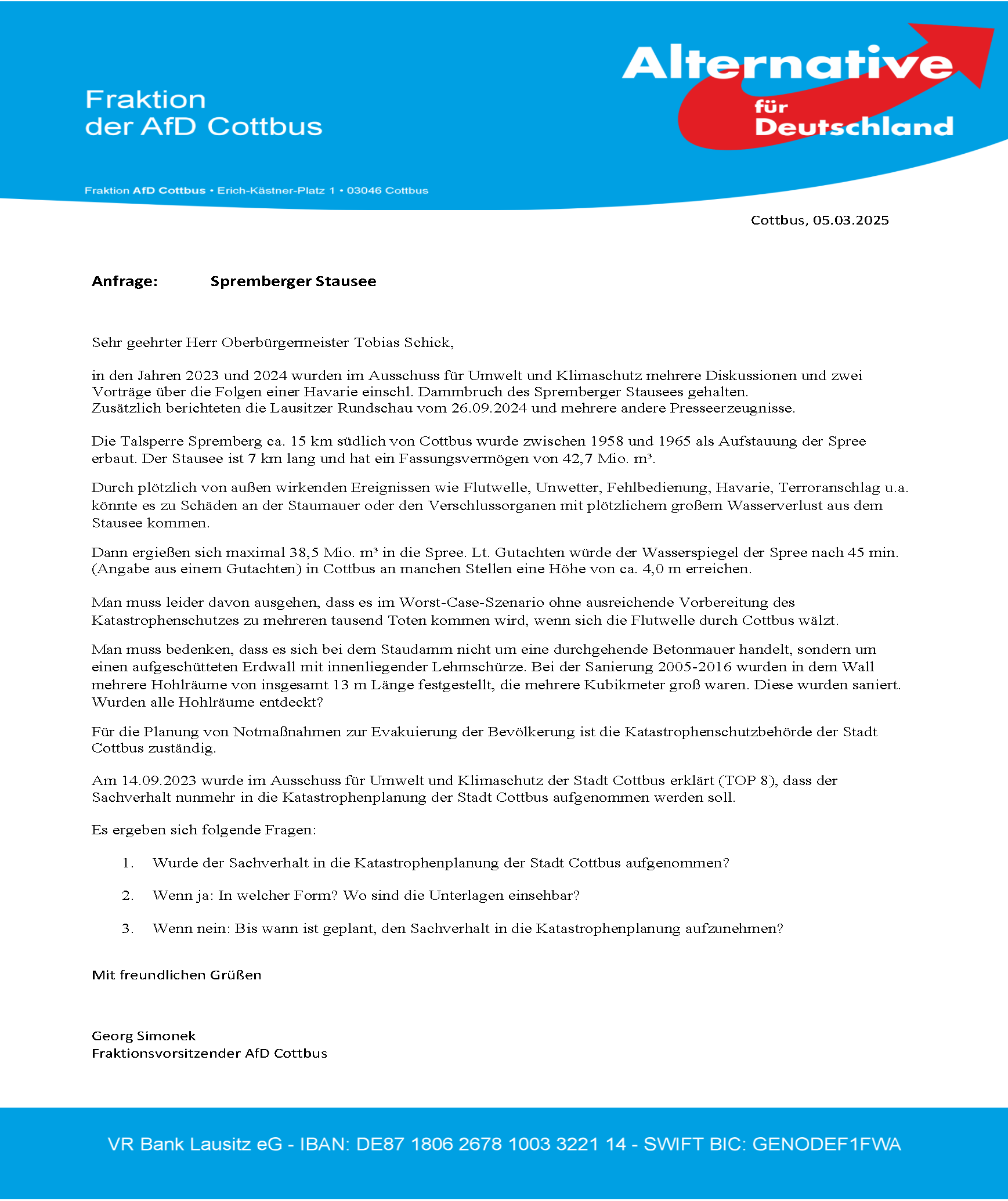 Anfrage AN-31/25 – Spremberger Stausee