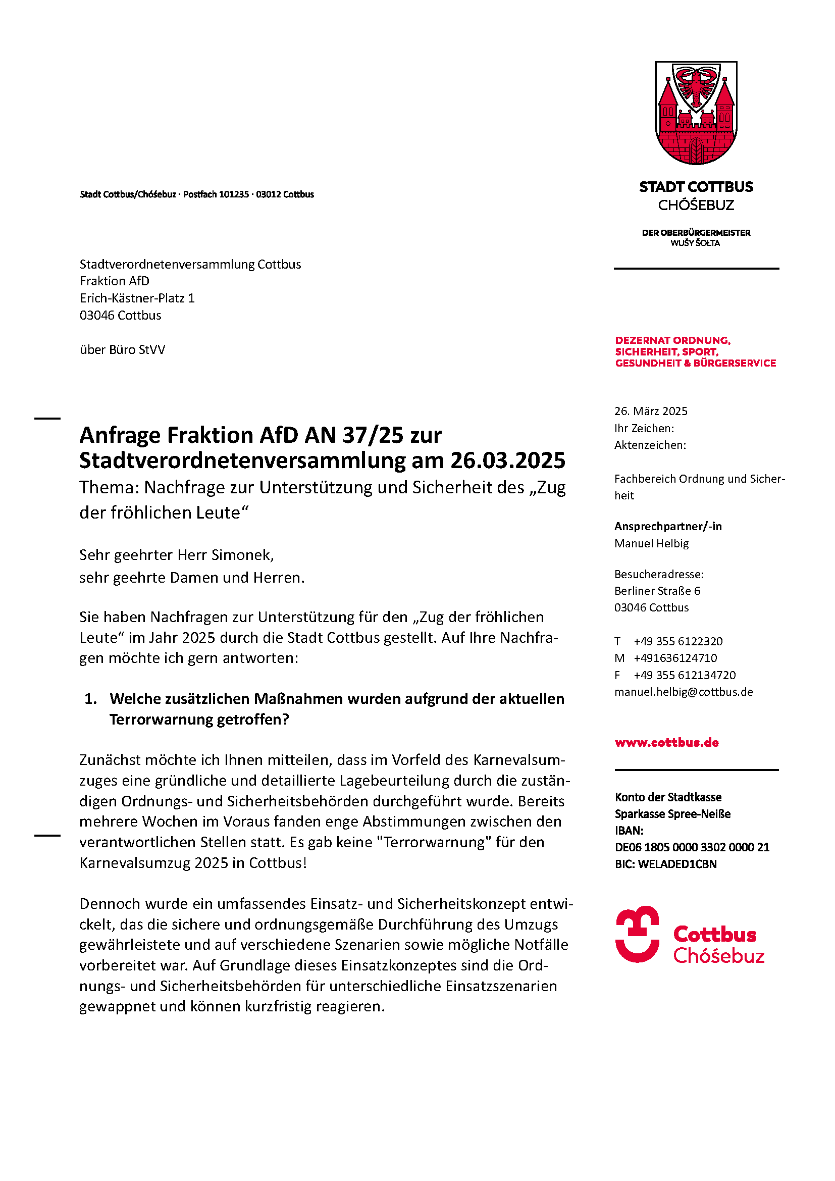 Anfrage AN-37/25 – Anfrage zu einer eventuellen Änderung der Gebührensatzung Download: AN_37_25 Download: Antwort_AN_37_25