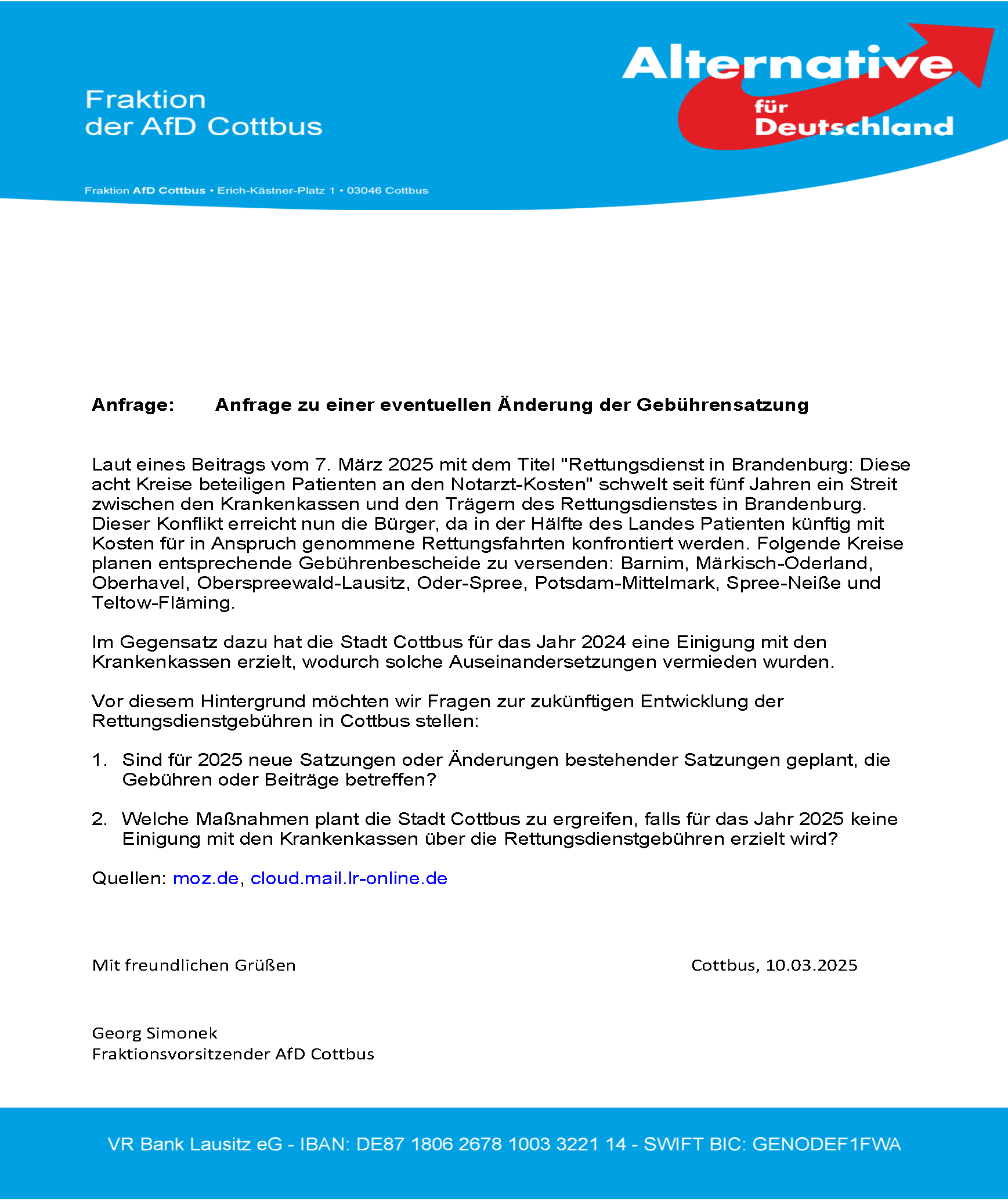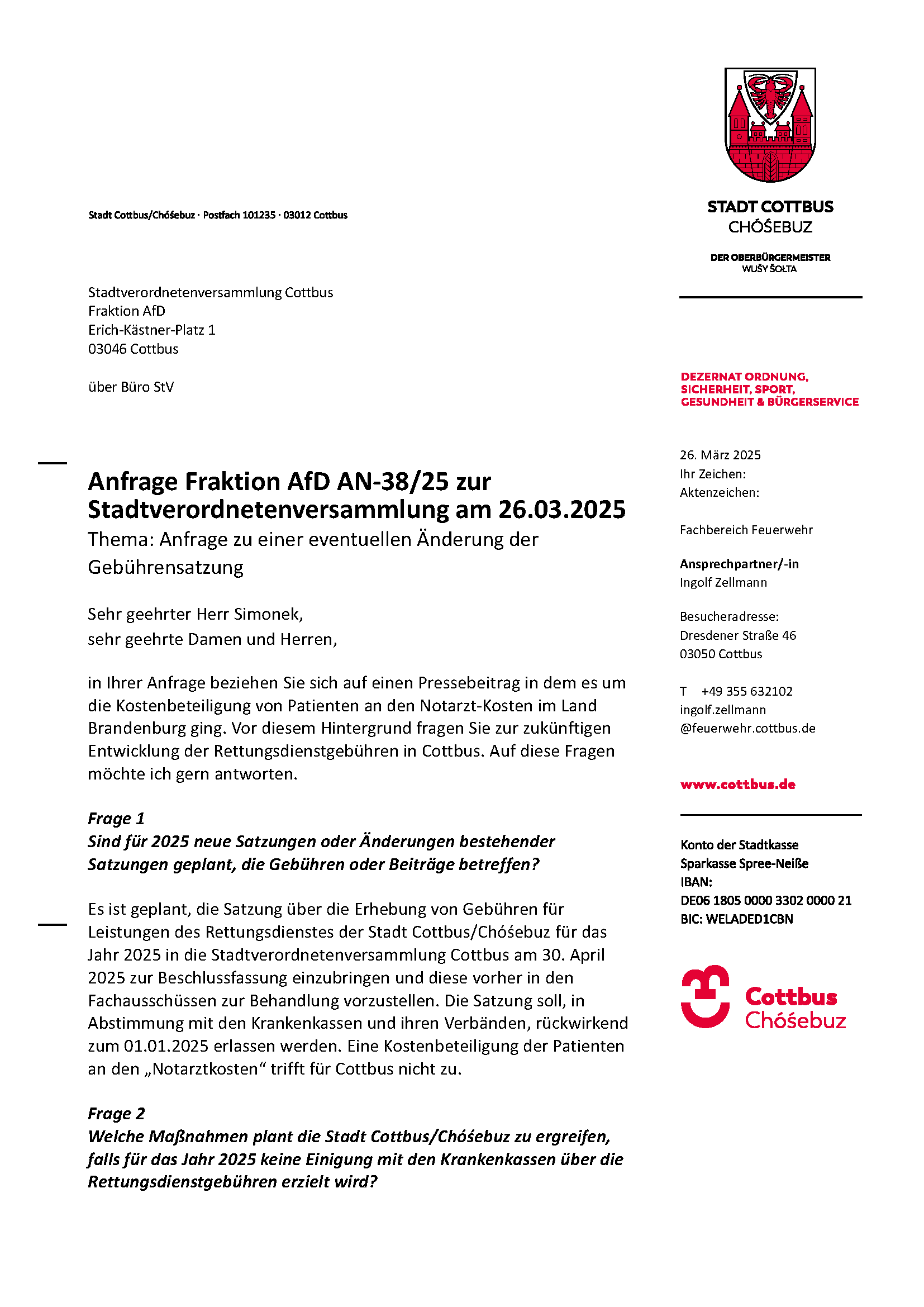 Anfrage AN-38/25 – Anfrage zu einer eventuellen Änderung der Gebührensatzung Download: AN_38_25 Download: Antwort_AN_38_25