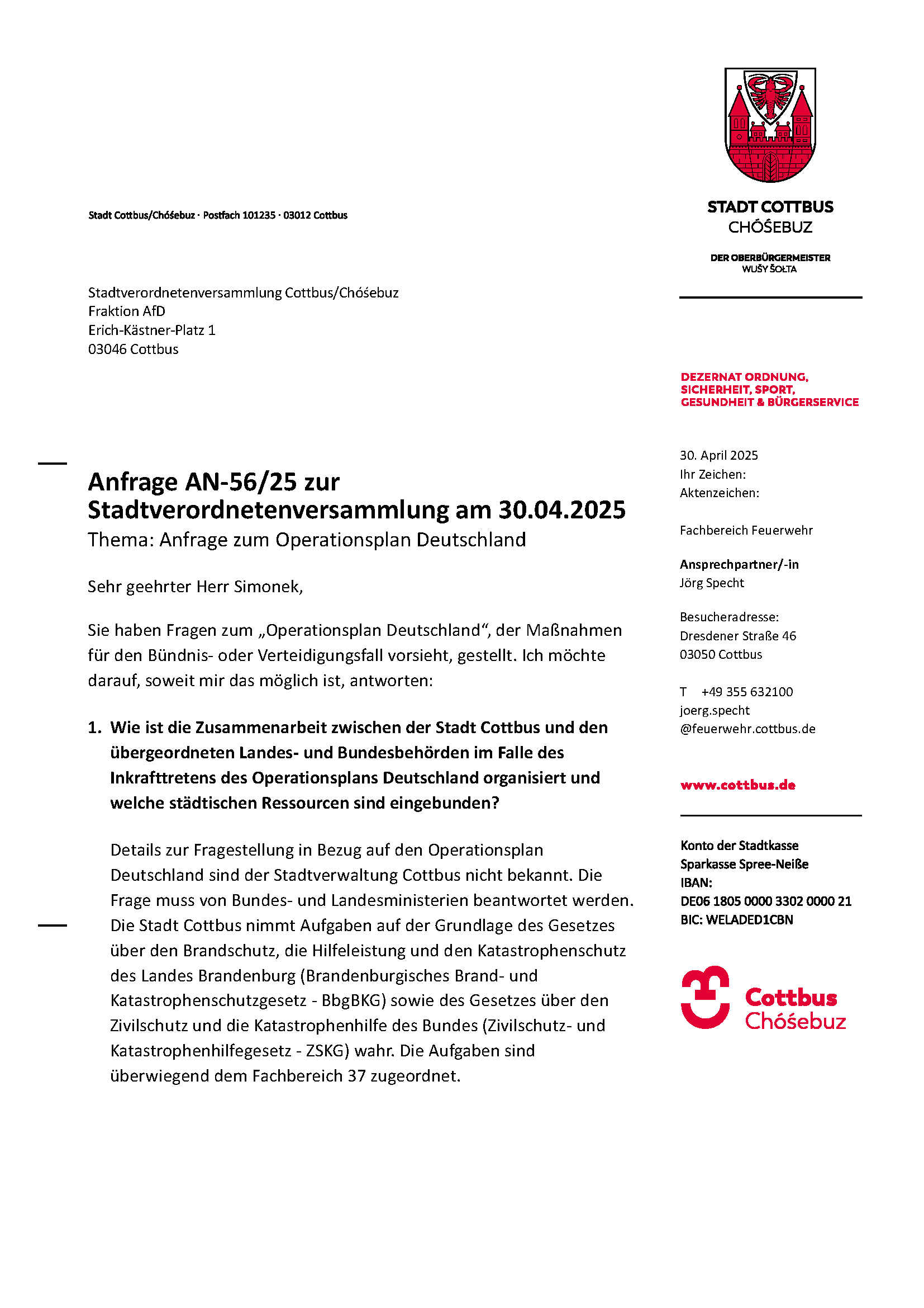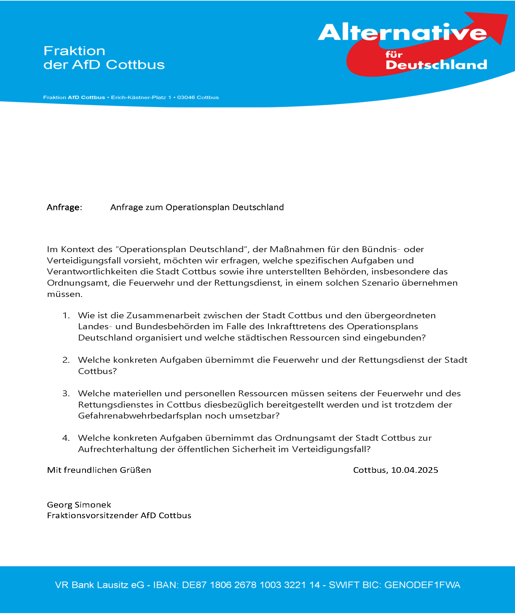 Anfrage AN-56/25 – Anfrage zum Operationsplan Deutschland